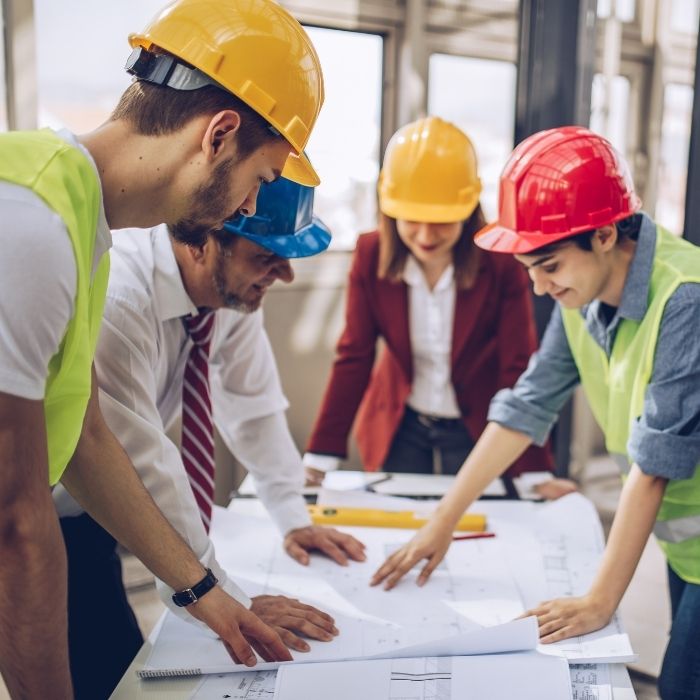 فريق من المهندسين المتخصصين يتولى متابعة وتنفيذ المشاريع لضمان الالتزام بالمخططات والمواصفات.